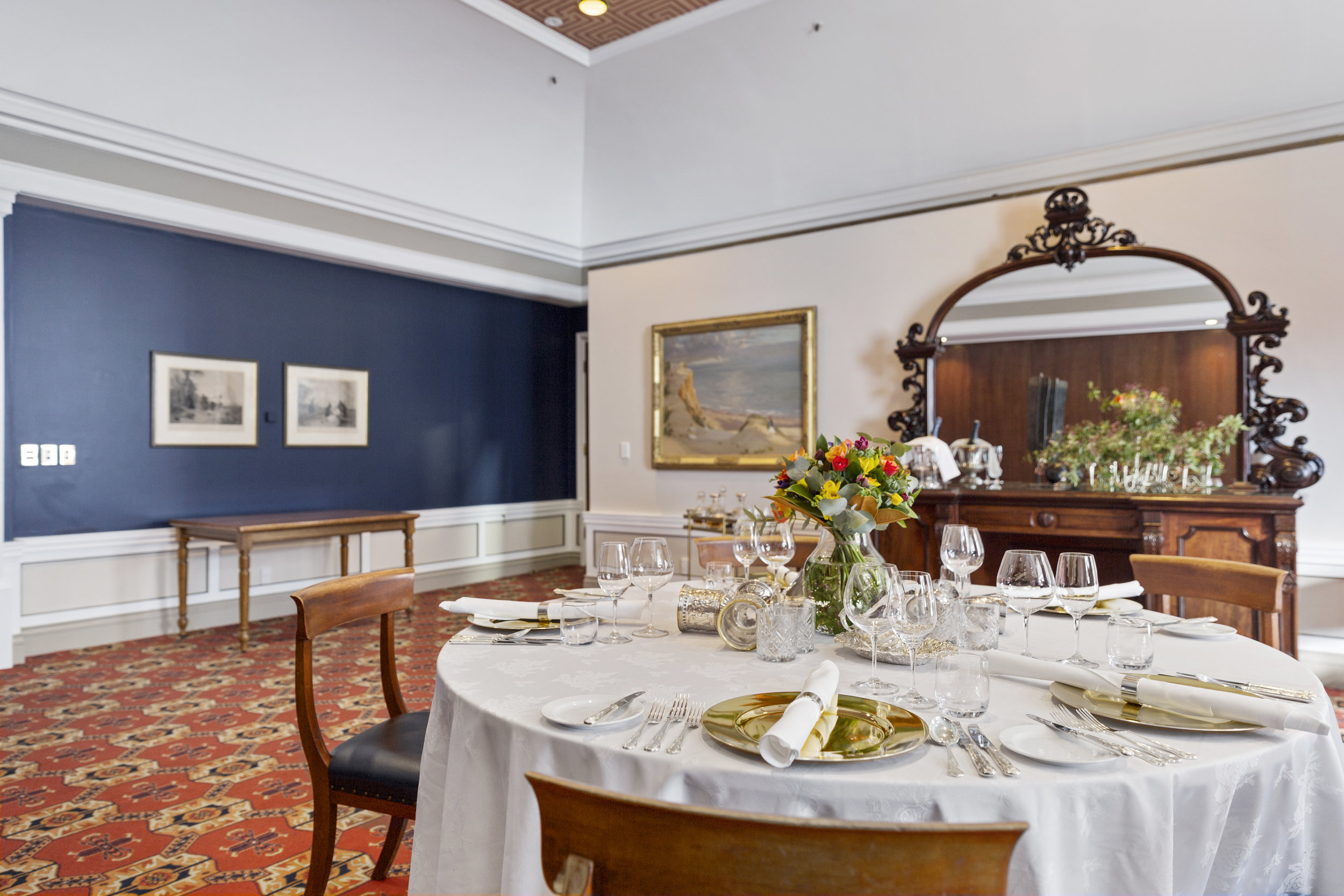 With its high ceilings and large windows overlooking The Terrace, the Main Dining Room has a character unlike any other venue in Wellington. It speaks of history and class, so rare and special. The Main Dining Room can seat up to 160 guests comfortably. This room can also be separated into one larger and one smaller private dining room. It is the most popular room for cocktail receptions by members of the Diplomatic Corps on such occasions as National Day Celebrations due to its large capacity of up to 350 guests